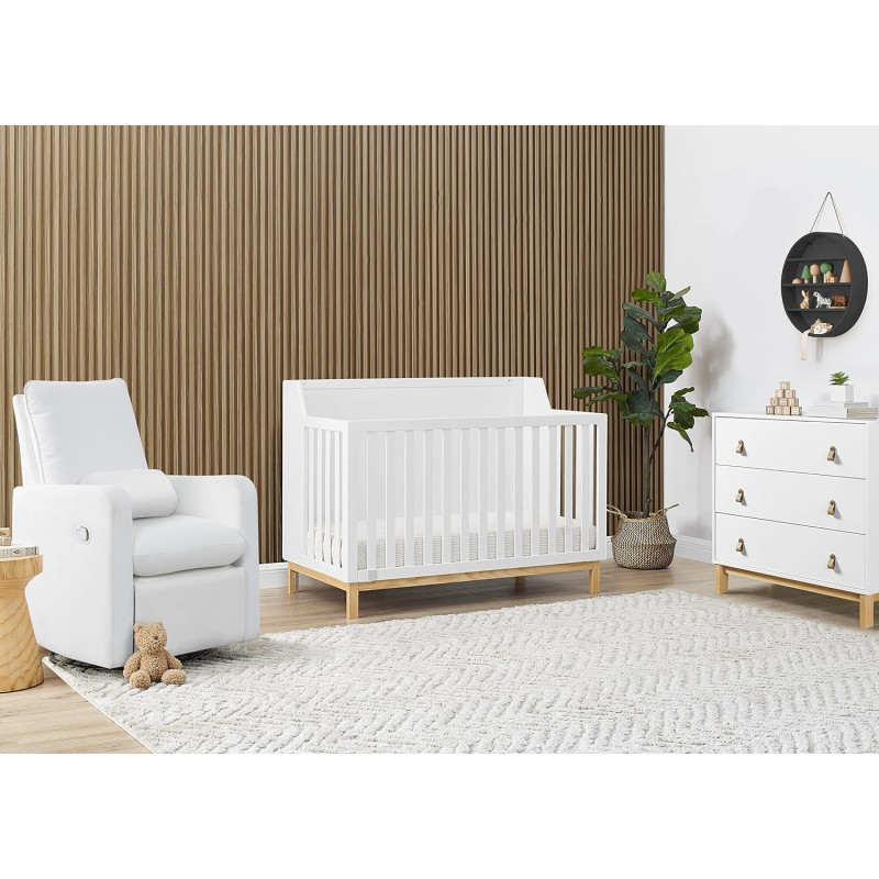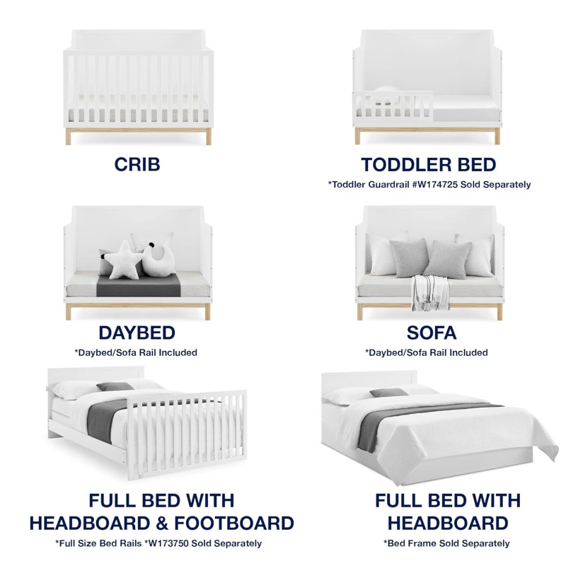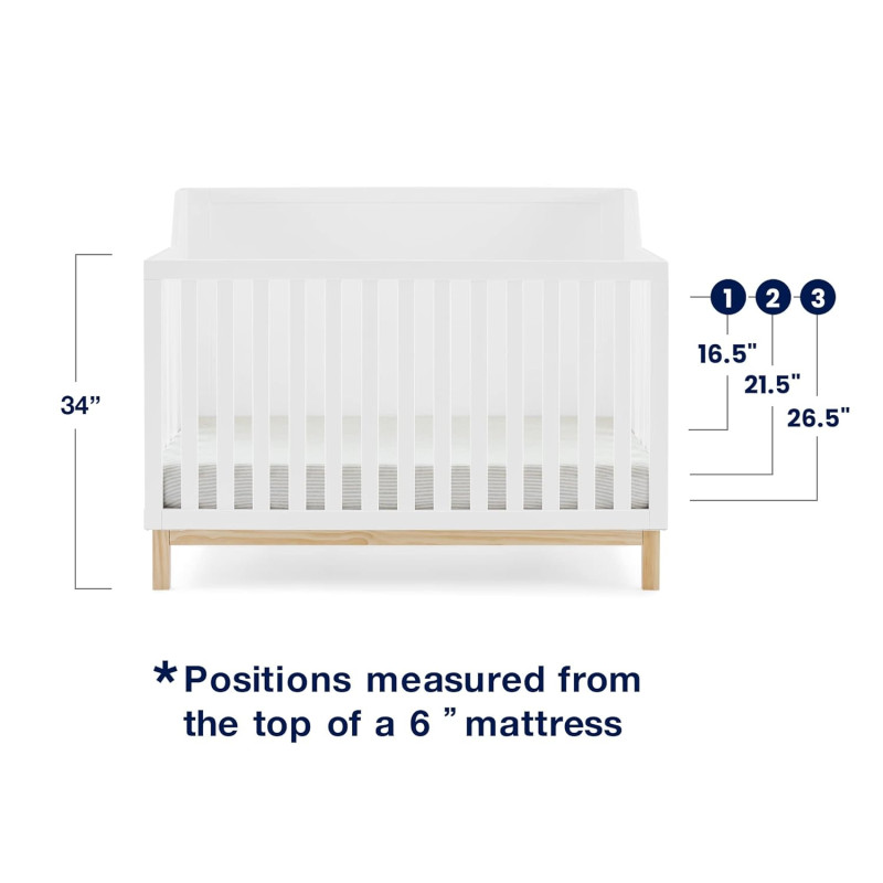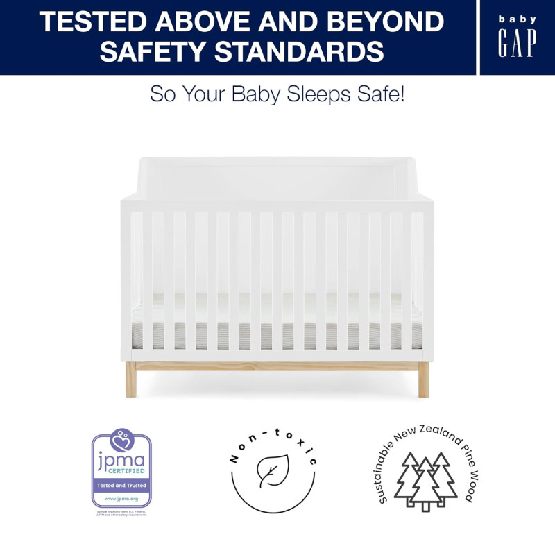 La cuna convertible babyGap Oxford 6 en 1 presenta una base en tonos naturales y un acabado sólido y limpio que combina perfectamente con cualquier paleta de colores. Sus líneas limpias y lados en ángulo lo convierten en la mejor opción para los padres amantes de la modernidad. Fabricada con materiales resistentes y sostenibles como el pino de Nueva Zelanda, esta cuna es la mejor opción para los bebés (¡y el planeta!). Diseñado cuidadosamente para crecer con su pequeño, el soporte del colchón ajustable de la cuna le permite bajar la altura del colchón a medida que su bebé crece. Cuando su hijo esté listo, su diseño versátil se adapta fácilmente desde una cuna hasta una acogedora cama para niños pequeños, un diván, un sofá y una cama de tamaño completo con o sin pie de cama (los rieles de conversión se venden por separado). Además, cuenta con la certificación GREENGUARD Gold, lo que significa que está diseñado para contribuir a un aire más limpio para un hogar saludable.