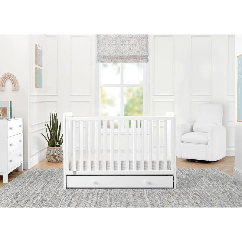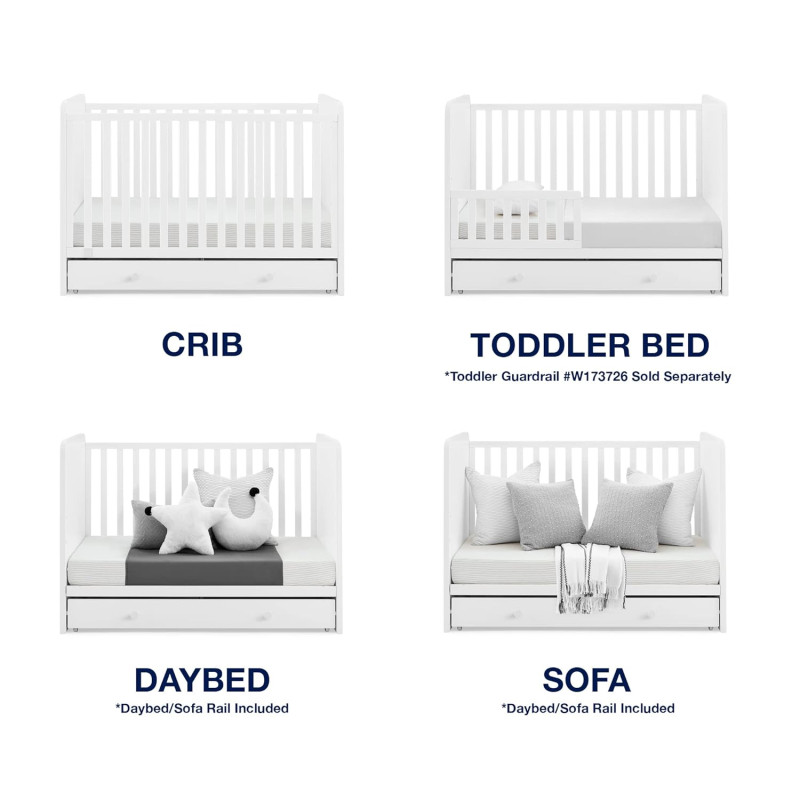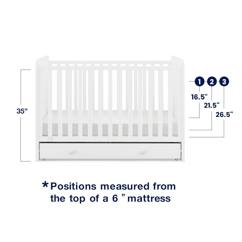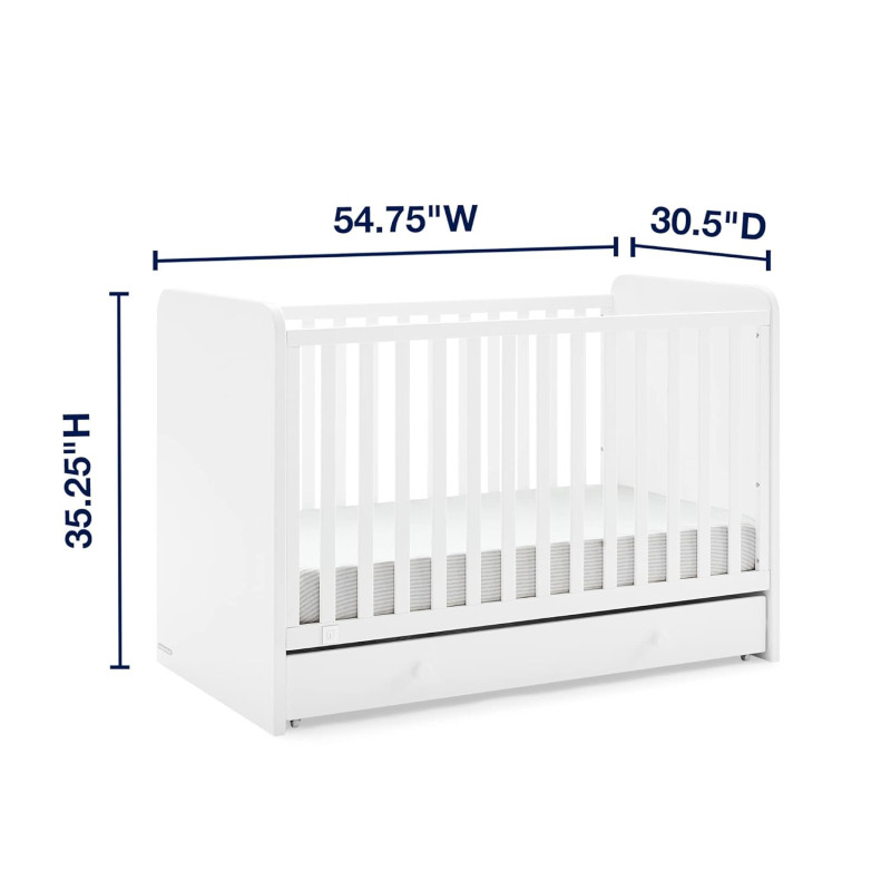 La cuna convertible 4 en 1 babyGap Graham con cajón de almacenamiento es una solución multifuncional. El cajón de almacenamiento incluido de Graham ayudará a aprovechar al máximo el espacio del dormitorio de los niños, brindándole un lugar para guardar fácilmente la ropa de cama o la ropa extra. Diseñado cuidadosamente para crecer con su bebé, el soporte del colchón ajustable de la cuna con tres posiciones le permite bajar la altura del colchón a medida que crece. Cuando su hijo esté listo, su diseño versátil se adapta fácilmente desde una cuna hasta una acogedora cama infantil, un diván y un sofá (el riel de conversión W173726 se vende por separado). Además, cuenta con la certificación GREENGUARD Gold, lo que significa que está diseñado para contribuir a un aire más limpio para un hogar saludable.