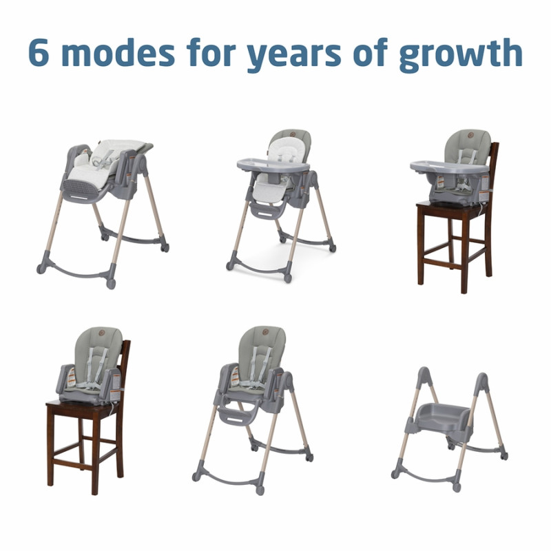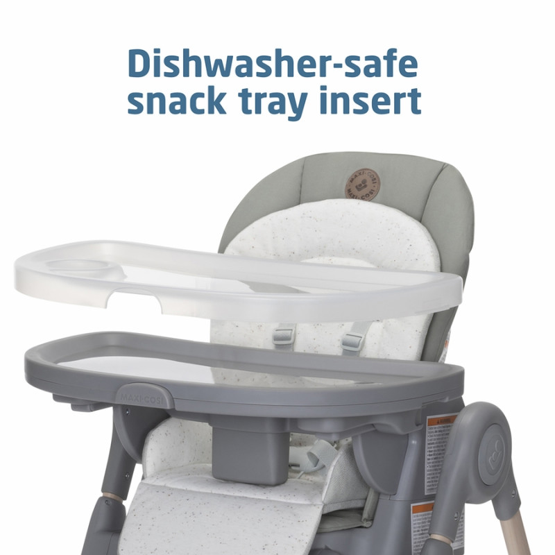 Maxi-Cosi Minla está llena de funcionalidades, con sus cinco posiciones de reclinación para mayor comodidad, cuatro posiciones de la bandeja de comida y nueve niveles de altura, puede utilizarlo como asiento infantil gracias al acogedor cojín para los más pequeños, como una silla alta o como un asiento elevado con bandeja para ubicarlo en cualquier silla. Las posibilidades de tener a su hijo junto a usted en la mesa son infinitas. ¿Un ajuste personalizado a medida que su hijo crece? Lo conseguirás con la silla de alimentación Minla 6 en 1.