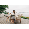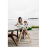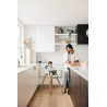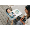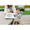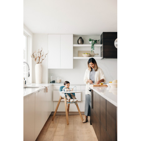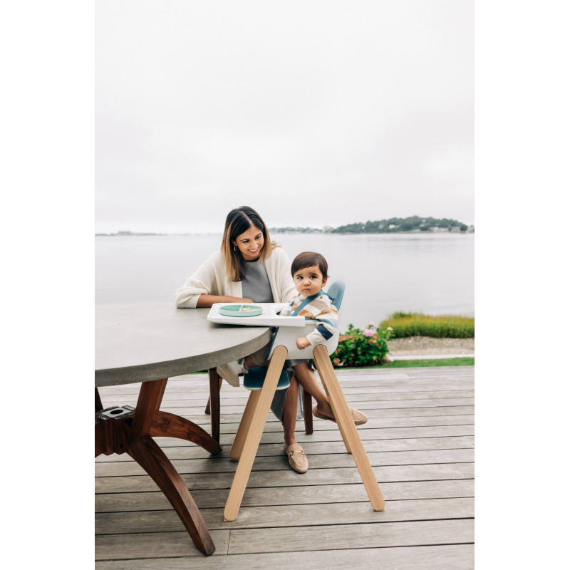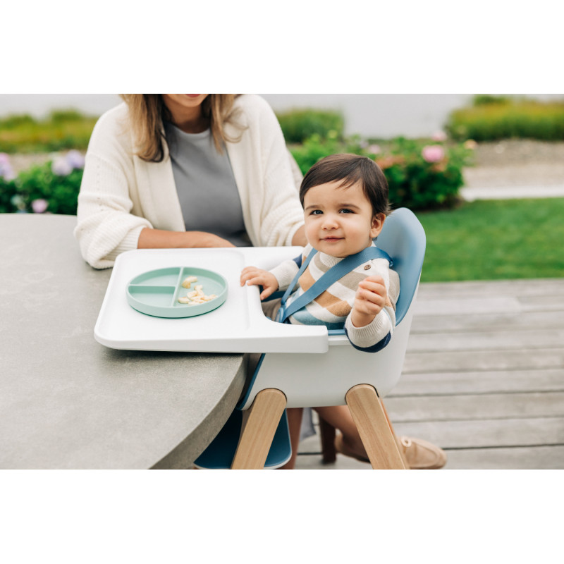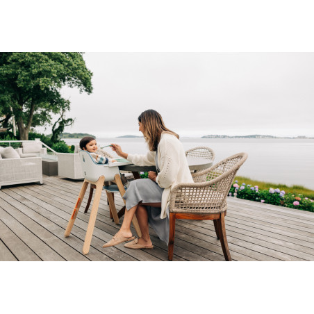 La silla de alimentación Ciro tiene un diseño elegante, un arnés exclusivo que se ajusta con solo presionar un botón (en la parte posterior) y una bandeja ajustable que es ligeramente más alta, lo que le permite extenderse sobre la mesa del comedor para que el bebé esté más cerca. El reposapiés giratorio de doble posición comienza en una posición más alta y luego gira a una posición más baja a medida que su bebé crece. El asiento sin costuras y el arnés apto para alimentos también facilitan la limpieza. Uso desde los 4 meses-3 años.