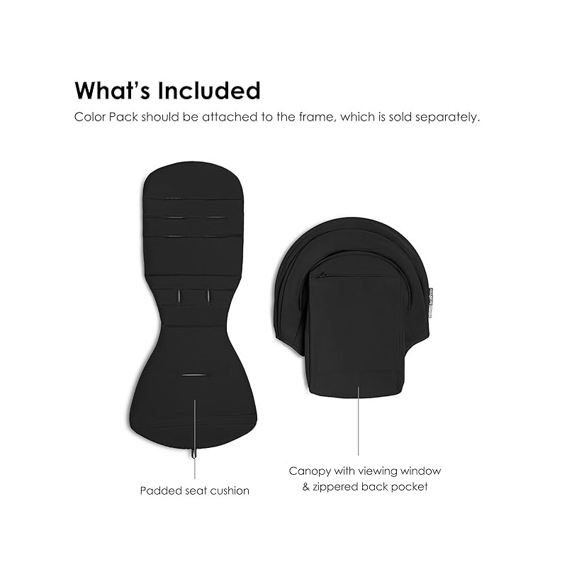 Compuesto por un cojín de asiento y un dosel, el color pack 6+ está diseñado para usarse con el chasis del cochecito Babyzen YOYO+ (se vende por separado) para crear un cochecito ágil y liviano diseñado específicamente para facilitar los desplazamientos y viajes en avión con su hijo.