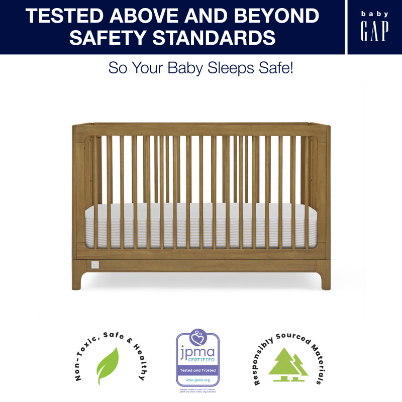 Además, cuenta con la certificación GREENGUARD Gold, lo que significa que está diseñado para contribuir a un aire más limpio para un hogar saludable. Certificada por JPMA para cumplir o superar todos los estándares de seguridad establecidos por la CPSC y ASTM.