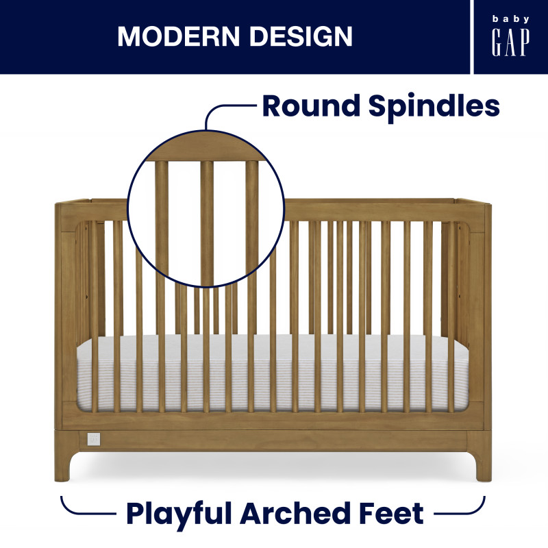 La cuna convertible 4 en 1 BabyGap Wren es una cuna moderna fabricada con materiales resistentes y sostenibles como el pino de Nueva Zelanda, esta cuna es la mejor opción para los bebés (¡y el planeta!).