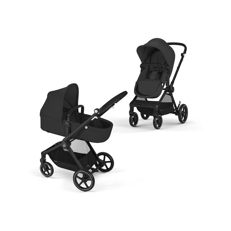 El coche Cybex EOS, es un coche 2 en 1 que se convierte en moisés, adaptándose a su bebé a medida que crece desde recién nacido. El asiento del coche tipo moisés es reversible se puede colocar mirando hacia adelante o hacia los padres y el manillar es regulable en altura.