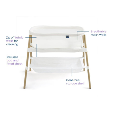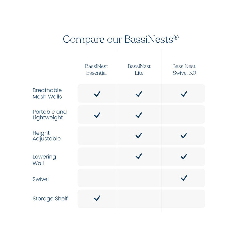 Certificado por JPMA y diseñado para cumplir o superar todas las normas de seguridad de la Comisión de Seguridad de Productos del Consumidor de EE. UU. Compatible con todos los accesorios BassiNest.