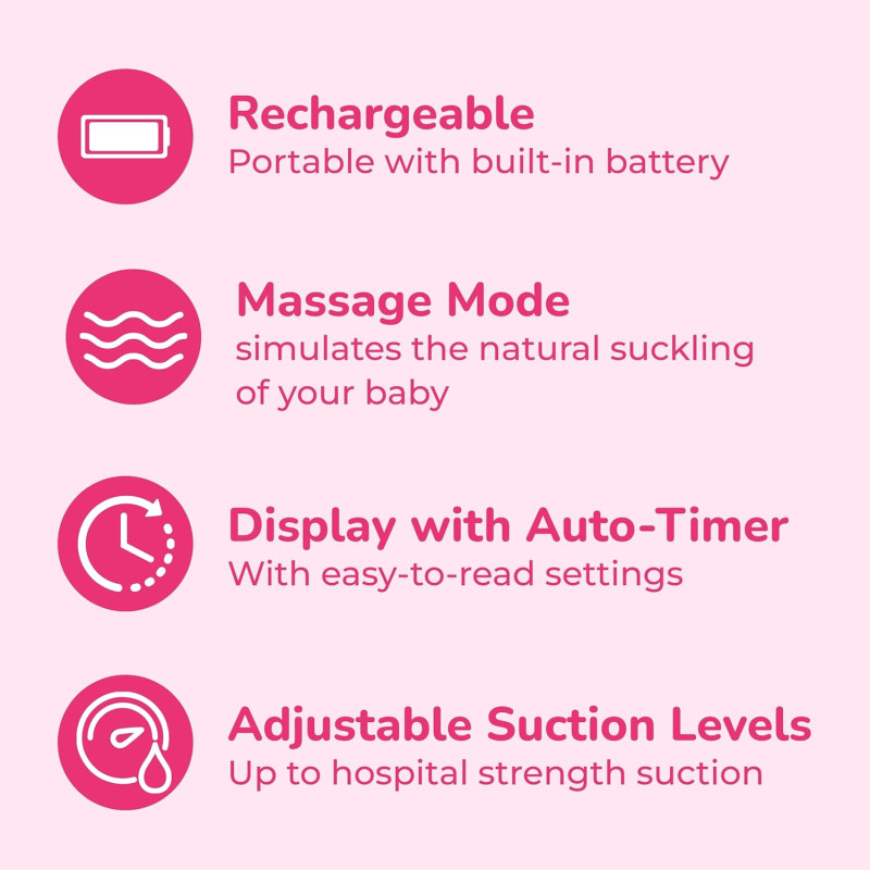 Amada por las mamás y los consultores de lactancia de todo el mundo, el extractor de leche eléctrico azul suave Spectra S1 Plus está diseñado para brindar confianza y comodidad a cada momento de la lactancia. El S1, que es portátil y recargable, también es silencioso y discreto para un bombeo relajante y, sin embargo, pesa solo 3 libras. Nuestra fundadora, Heidi Humphries, insistió en el motor más silencioso disponible para el S1 Plus, que cuando está en el "modo de masaje" simula la succión natural del bebé. Spectra Baby pasó años desarrollando características para el S1 Plus, como la "protección contra reflujo" para evitar que la leche materna se contamine con bacterias. Pensamos mucho en cosas como los "niveles de succión ajustables" porque eso proporciona un flujo de leche más natural.