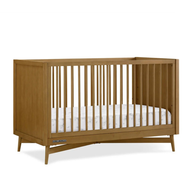 El diseño de la cuna convertible 4 en 1 Dylan de Delta Children le dará a la habitación de su bebé un estilo sofisticado. Su elegante base en forma de X, paneles laterales empotrados y sus ejes redondos completan el aspecto.