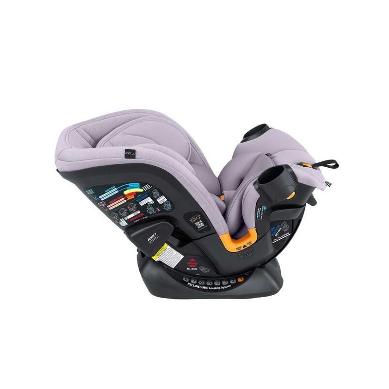 Para la instalación orientada hacia atrás, OneFit™ LX incluye conectores LATCH premium y un tensor SuperCinch multiplicador de fuerza. Los niveles de burbuja RideRight funcionan en conjunto con el sistema de nivelación ReclineSure de 8 posiciones para brindar un mejor ajuste al vehículo y mayor comodidad al niño.
