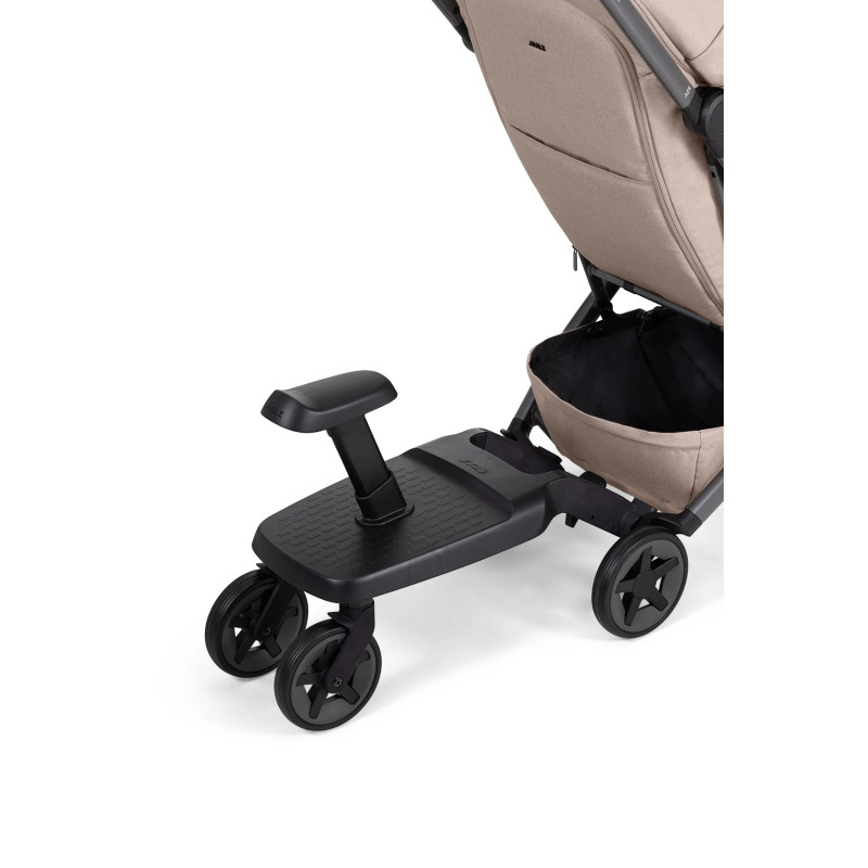 El accesorio ideal para pasear con dos pequeños. Tu hijo mayor puede ir sentado o de pie y, cuando quiera caminar, solo pliegas la patineta hacia arriba sin necesidad de desmontarla. Además, se pliega junto con tu coche Joolz Aer² para un almacenamiento fácil y compacto.