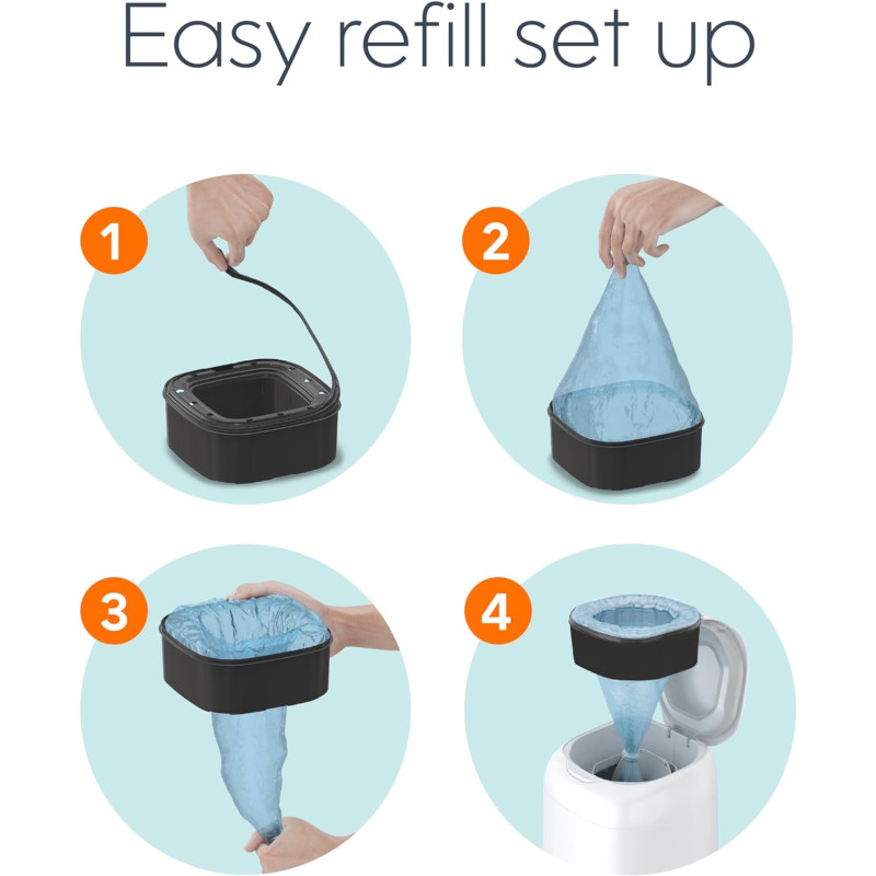 • Película duradera multicapa: cuenta con tecnología de bloqueo de olores que evita que los olores se escapen y mantienen fresca la habitación. La película de repuesto tiene multicapa antimicrobiana, la cual ayuda a proteger contra los gérmenes e inhibe el crecimiento de bacterias en la película.