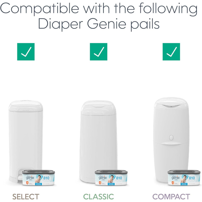 • Compatible con los siguientes depósitos Diaper Genie: Compact, Select y Classic asegurando el máximo control de olores.
