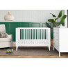 Diseñada para crecer con su hijo, la cuna Ollie se transforma de cuna con colchón ajustable en tres alturas a cama infantil, sofá-cama y, finalmente, sofá (requiere barandilla de niños pequeños W100725 para convertirla en cama infantil, la cual se vende por separado)