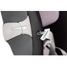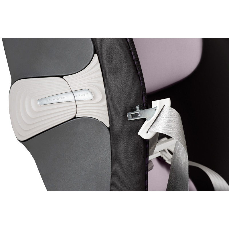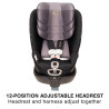 Para un ajuste adecuado de su hijo, cuenta con reposacabezas regulable en altura de 12 posiciones incluso cuando el niño está en el asiento y soportes con hebilla magnética para facilitar la entrada y salida del asiento.