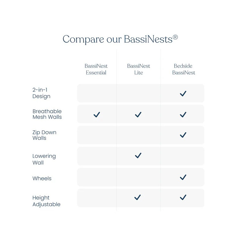 Certificado por JPMA y diseñado para cumplir o superar todas las normas de seguridad de la Comisión de Seguridad de Productos del Consumidor de EE. UU. Compatible con todos los accesorios BassiNest.