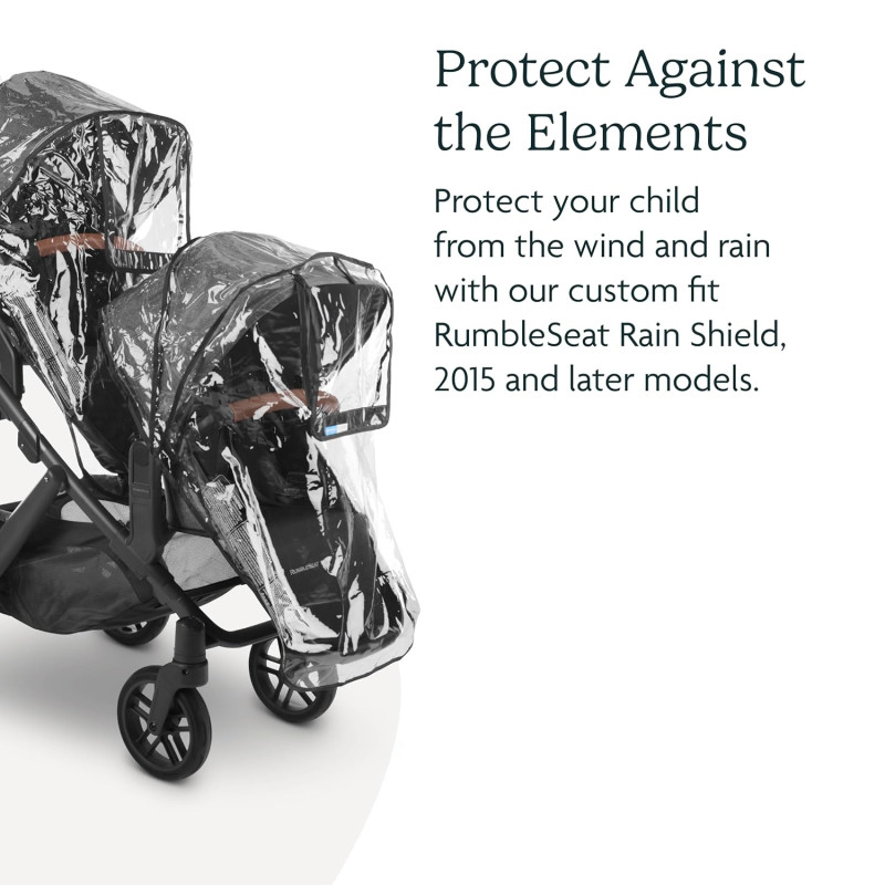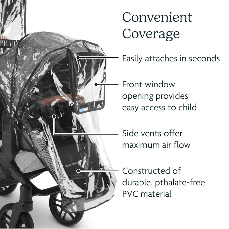 Cobertor de lluvia para RumbleSeat (modelos 2015 y posteriores, incluyendo RumbleSeat V2, RumbleSeat V2+ y RumbleSeat V3) al usarse en la carriola Vista.