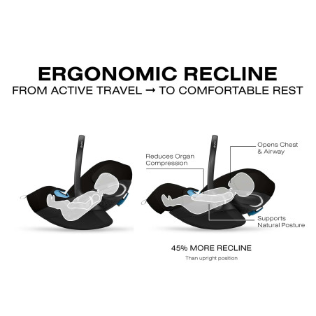 COMPATIBLE CON SISTEMA DE VIAJE: Se integra perfectamente con los cochecitos CYBEX para un sistema de viaje práctico con reclinación ergonómica.