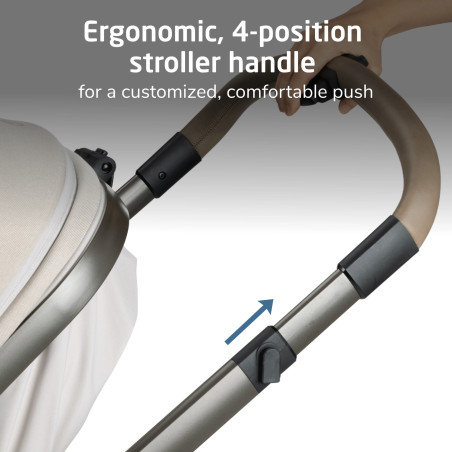 • Manillar ergonómico y contorneado de la silla de auto, diseñado para apoyar mejor sobre la cadera y hacer más cómodo el transporte.