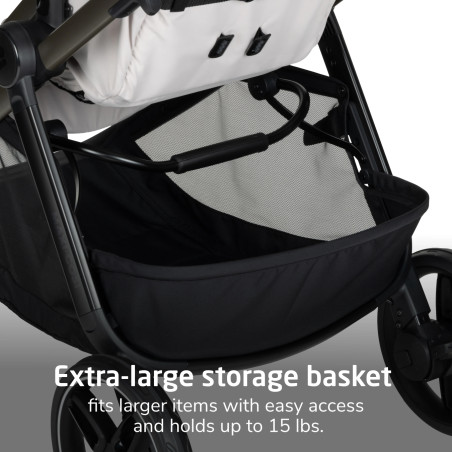 • Los insertos de la silla de auto se retiran fácilmente sin necesidad de volver a pasar el arnés.