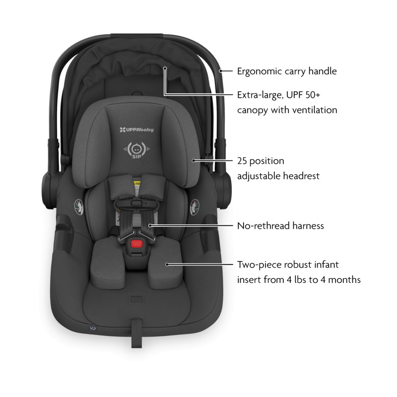 El asiento para automóvil UPPAbaby Aria V2 es el más liviano del mercado, con un peso de solo 2.7 kg (6 lb). El Aria V2 permite pasar fácilmente del automóvil al coche, brindando un viaje seguro y cómodo para tu bebé. Es la opción ideal si buscas un sistema de viaje ligero, práctico y seguro sin sacrificar comodidad ni protección.