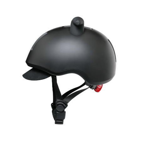 El casco Liki tiene un diseño llamativo con cuernos de silicona sobre un casco negro mate. Ofrece máxima protección gracias a su sistema de ajuste con rueda regulable para un ajuste seguro y cómodo. Además, incorpora una luz LED integrada para ofrecer máxima visibilidad, brindando mayor seguridad a tu hijo en cada paseo.