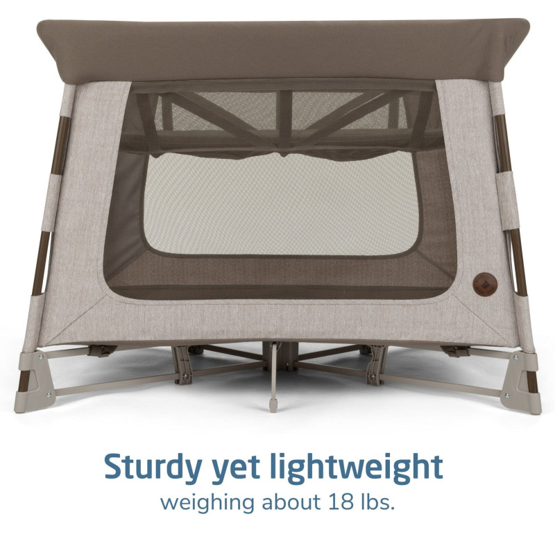 Presentamos el nuevo Swift. Un patio de juegos de viaje 3 en 1 elegante y de usos múltiples que se puede usar como un moisés para recién nacidos, un espacio para dormir para niños pequeños y un patio de juegos seguro y resistente, desde recién nacidos hasta niños pequeños. Con un peso aproximado de 18 libras, es el más liviano de su tipo. Con un pliegue ultrarrápido, Swift es fácilmente el patio de juegos de viaje más rápido de plegar y desplegar en casa o en la carretera.