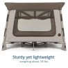 Está diseñado para brindar velocidad y facilidad de uso. Su pliegue suave en un solo paso es tan rápido y fácil que incluso puede hacerlo con una sola mano. No hay candados ocultos que se interpongan en el camino: una acción rápida y simplemente puede continuar con su ajetreado día. Swift crece con su bebé, desde recién nacido hasta niño pequeño. Entonces, en lugar de comprar tres productos portátiles separados (un moisés, un espacio para dormir de viaje y un patio de juegos), el Swift es los tres, elegantemente combinados en uno.