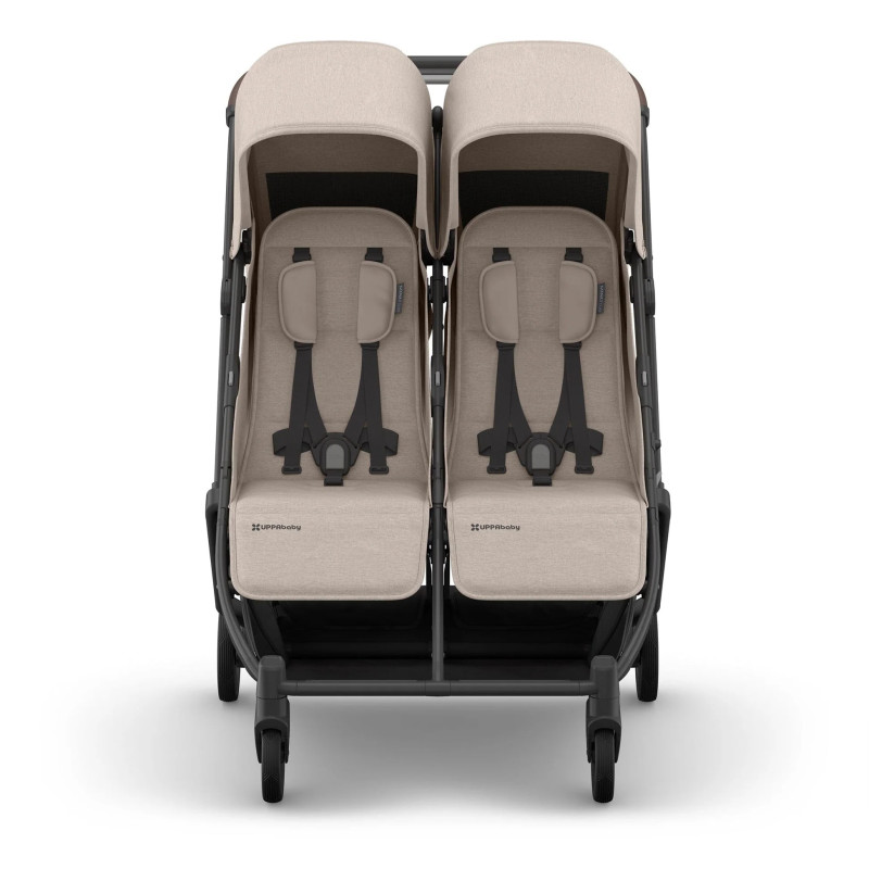 El UPPAbaby Minu Duo es un coche compacto y versátil, con asientos lado a lado diseñado para llevar dos niños, desde recién nacidos hasta bebés y niños pequeños hasta 50 lbs (23 kg) por asiento. Este coche cabe fácilmente por puertas estándar, lo que lo convierte en el compañero de viaje familiar perfecto.