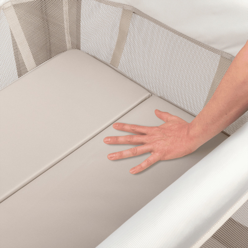 El Swift tiene un colchón único de 2 etapas que se abre para adaptarse perfectamente al moisés, proporcionando un colchón más pequeño y cómodo que es ideal para los recién nacidos. A medida que su bebé crece, el colchón se vuelve a juntar para crear un espacio más grande y súper cómodo para jugar o una merecida siesta.